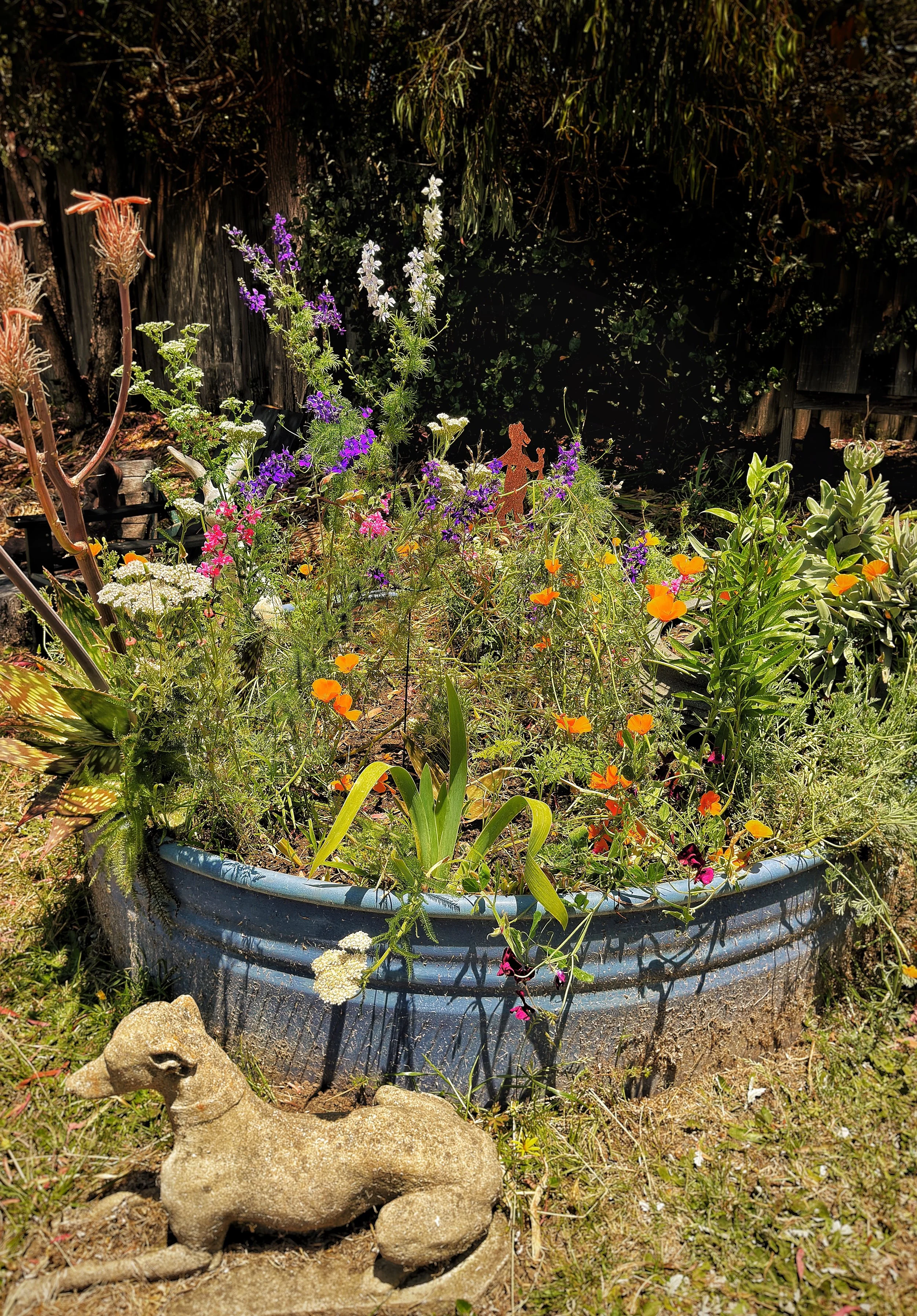 She enjoyed the fruits, flowers of her yard and tended to them in a simple straight forward manner. She wanted her garden to be wild, untamed, uncultivated looking. Weeds and flowers often had equal opportunities to multiply. In fact, many trees and plants were planted by the birds and grew in unlikely places, all respected by her. They existed naturally and spontaneously with a chance to grow without fear of being removed.